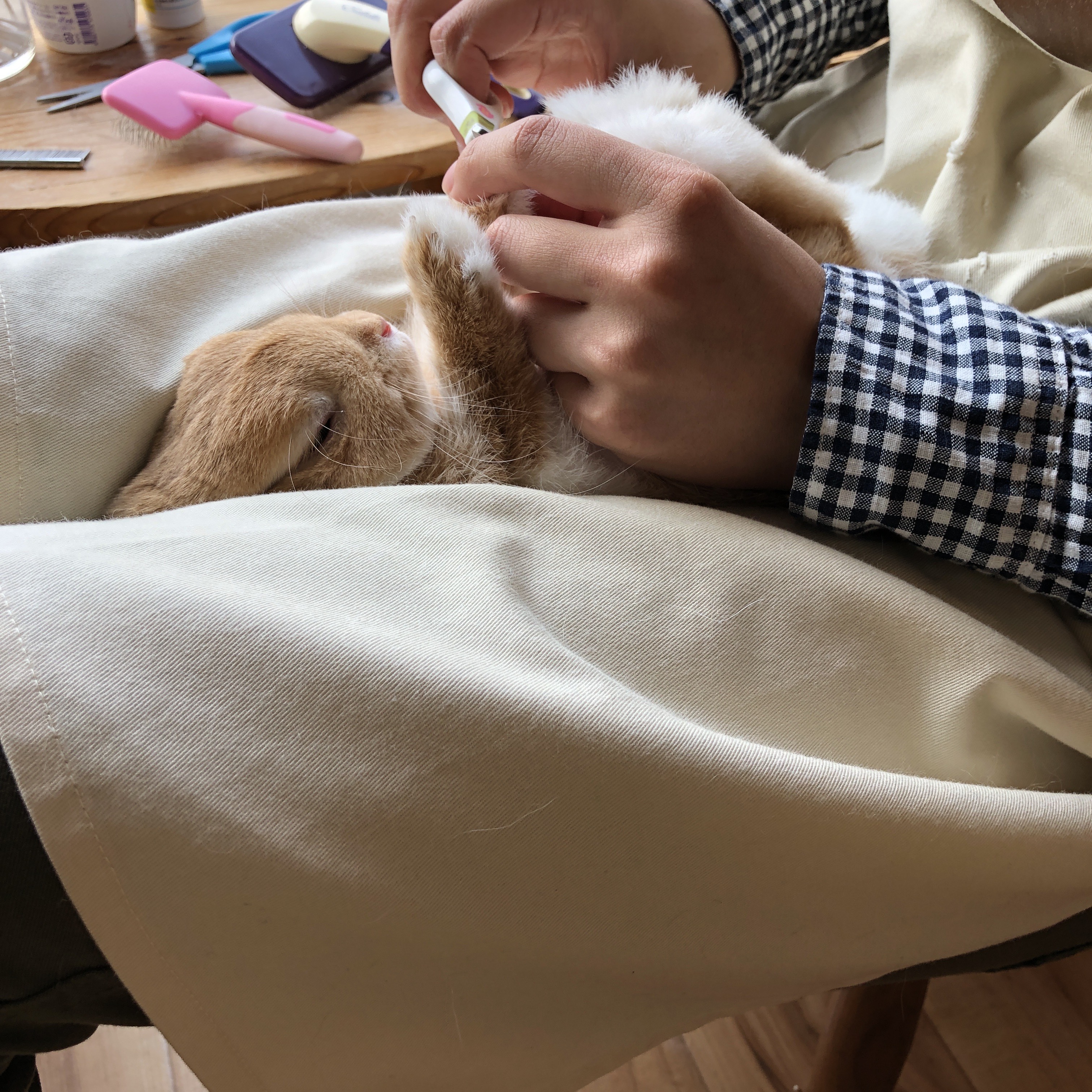 とりあえず🐰体重測定⚖️、950g台ですね😒 そして🐰体格をチェックしてから🐰爪切り、🐰ブラッシングです😊